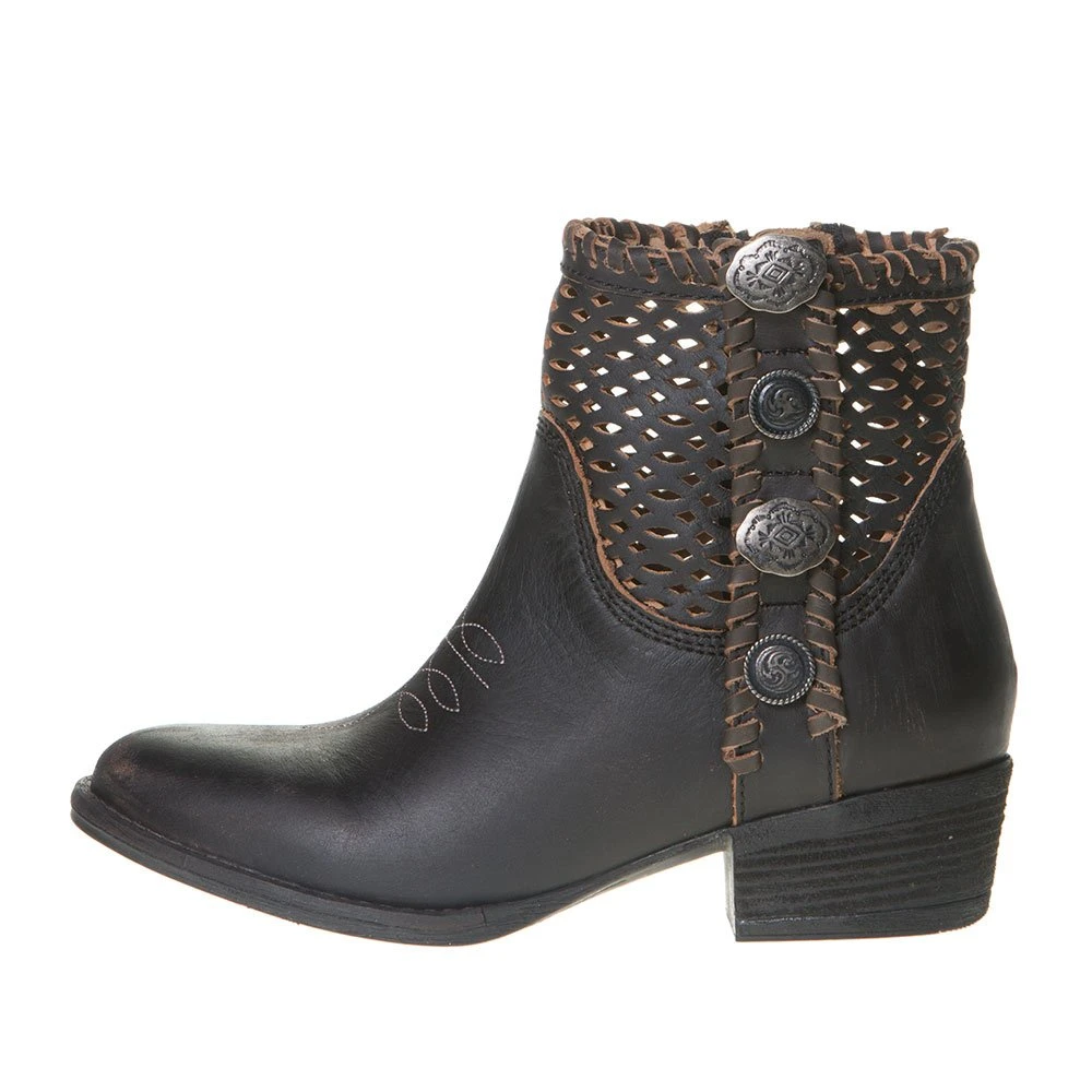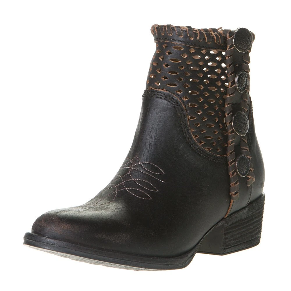 This Women’s Circle G Black Cut Out Concho Bootie is a great piece to add to your boot collection. Can be worn casually or dressed up to go to an event. These are sure to turn heads.