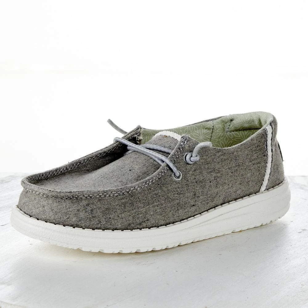 This particular Chambray version of the Wendy collection introduces an iconic low top moc with soft chambray-cotton throughout. They are soft, breathable blend of cotton and canvas. This shoe is lined with a leather-lined insole for comfort while featuring the easy-on system with elastic laces and ultralight outsole.