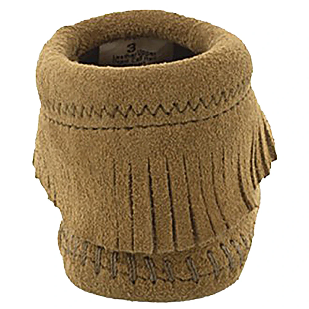 From park to play date, colorfully coordinate your Mini-me with a new suede style. This baby moccasin features a soft suede upper and sole with elasticized opening for easy on and off.