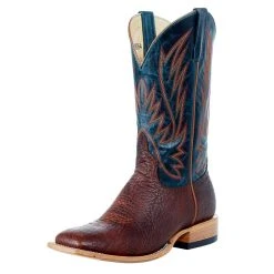 Hondo Enterprises Inc Men’s Cognac Roughout Pull Up 13in. Blue Toe Square Toe Cowboy Boot