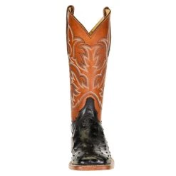 Justin Boots Men’s Pascoe Black Full Quill Ostrich 13in. Rebel Suntan Top Cowboy Boots