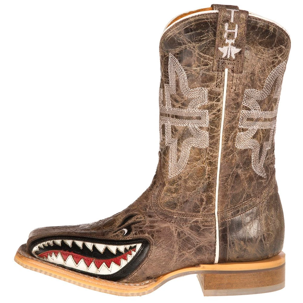 Get your junior cowboy or cowgirl out and about in these Sharky Man Eater themed boots from Tin Haul.