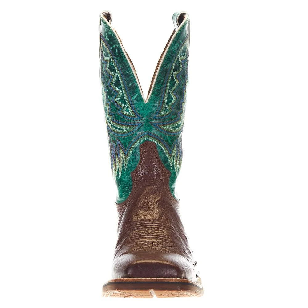 The 11” Hickory Smooth Ostrich Boot from the TLX Performance collection features a cool crushed turquoise blue upper on a contrasting blonde foot. This hardworking boot is designed for a comfortable fit with a ChannelFlex™ insole and flexible square toe design. The removable PerfX™ insert with Dri-Freeze® provides comfort and moisture-management underfoot, and the new performance outsole delivers the durable traction you need.