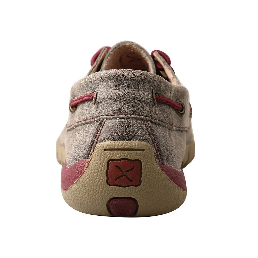 Ladies go for a casual every day look with our grey/berry driving moc boat shoe from Twisted X.