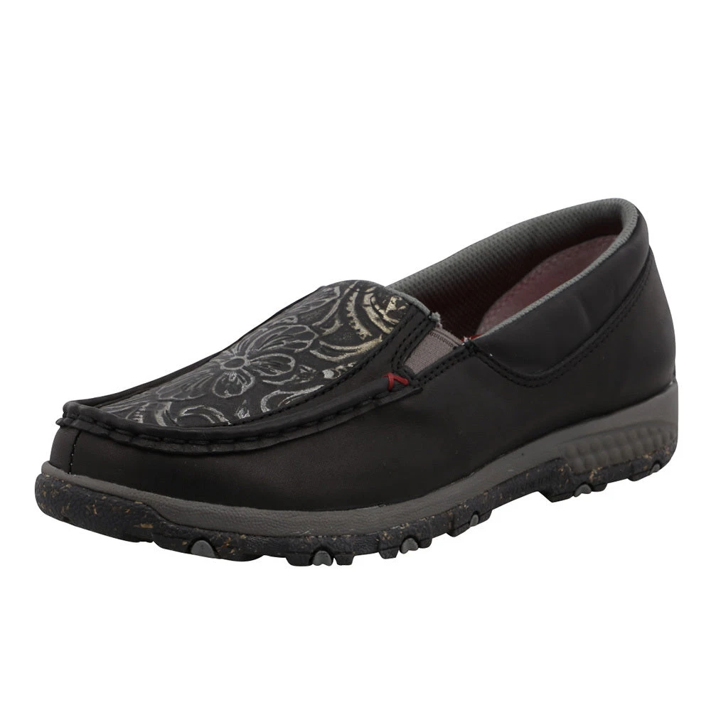 The Women’s Slip-On Driving Moc, made with full-grain leather, features Twisted X® patent-pending CellStretch® comfort technology – ensuring that every step you take is backed by cloud-like comfort. The Slip-On Driving Moc features a removable Blend85â„¢ upcycled footbed and double gore panels that flex for ease of sliding in, yet, conform comfortably to the foot without the need for laces. The compression-molded sugar cane molasses EVA midsole is paired with a molded rubber outsole integrated with eco-friendly rice husks, making a one-of-a-kind, sustainable outsole – all while providing unmatched stability and durability that you need to carry you from one adventure to the next.