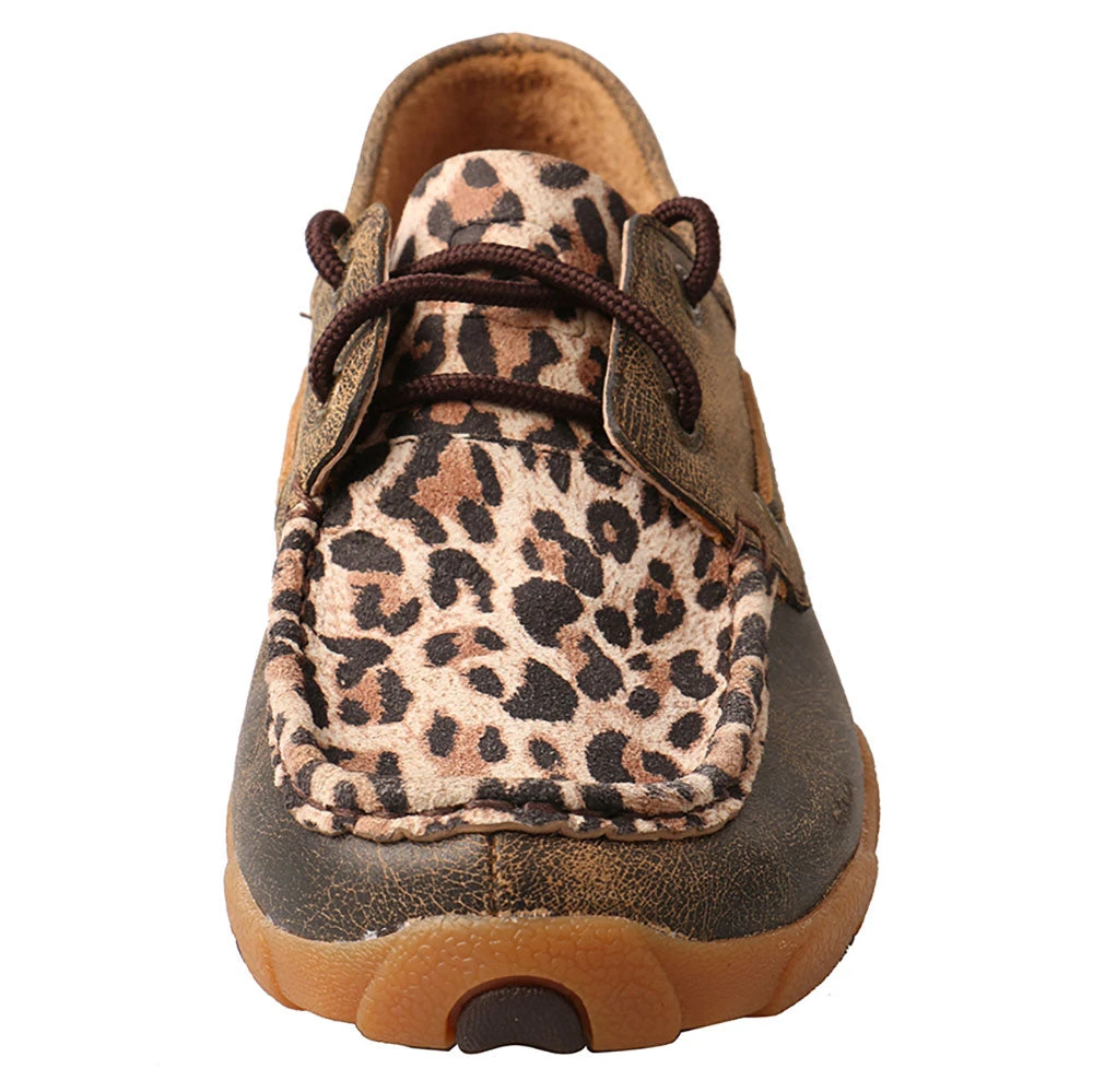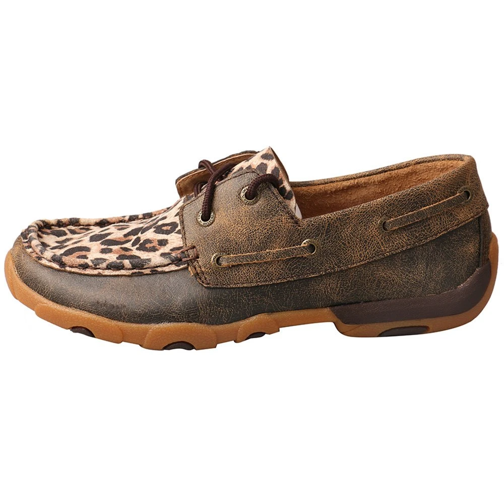 Step out in style and comfort with these distressed leopard bomber styled boat shoes from Twisted X.